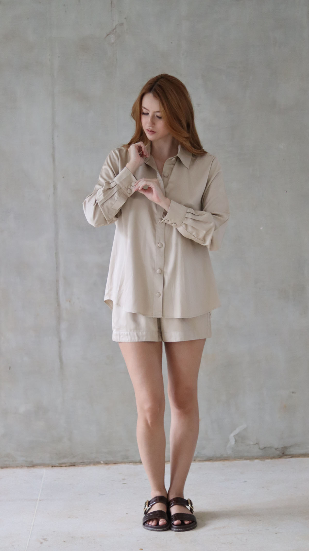 Conjunto Bambu – Camisa: feito em fibra de bambu. Possui botões encapados.
