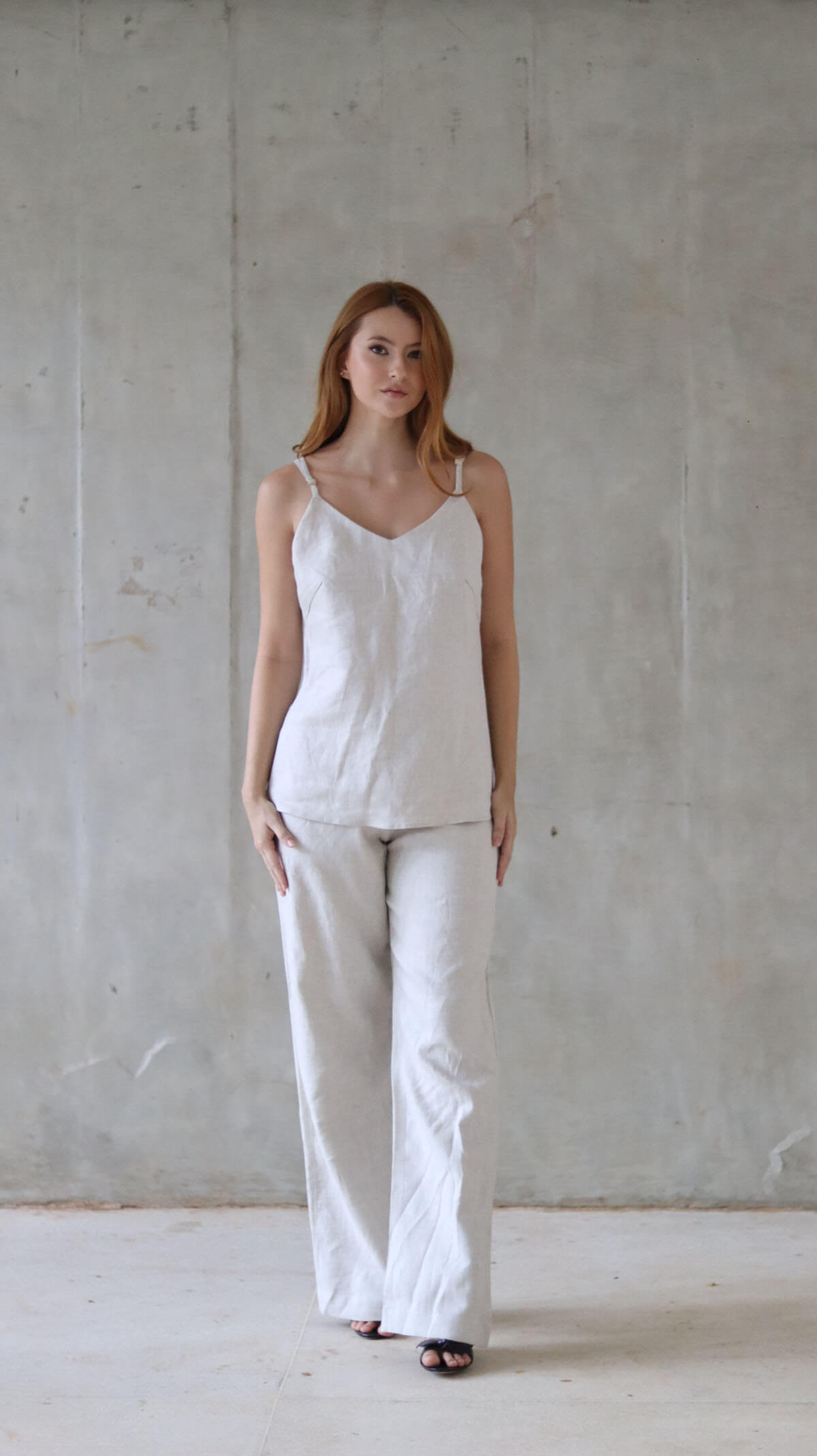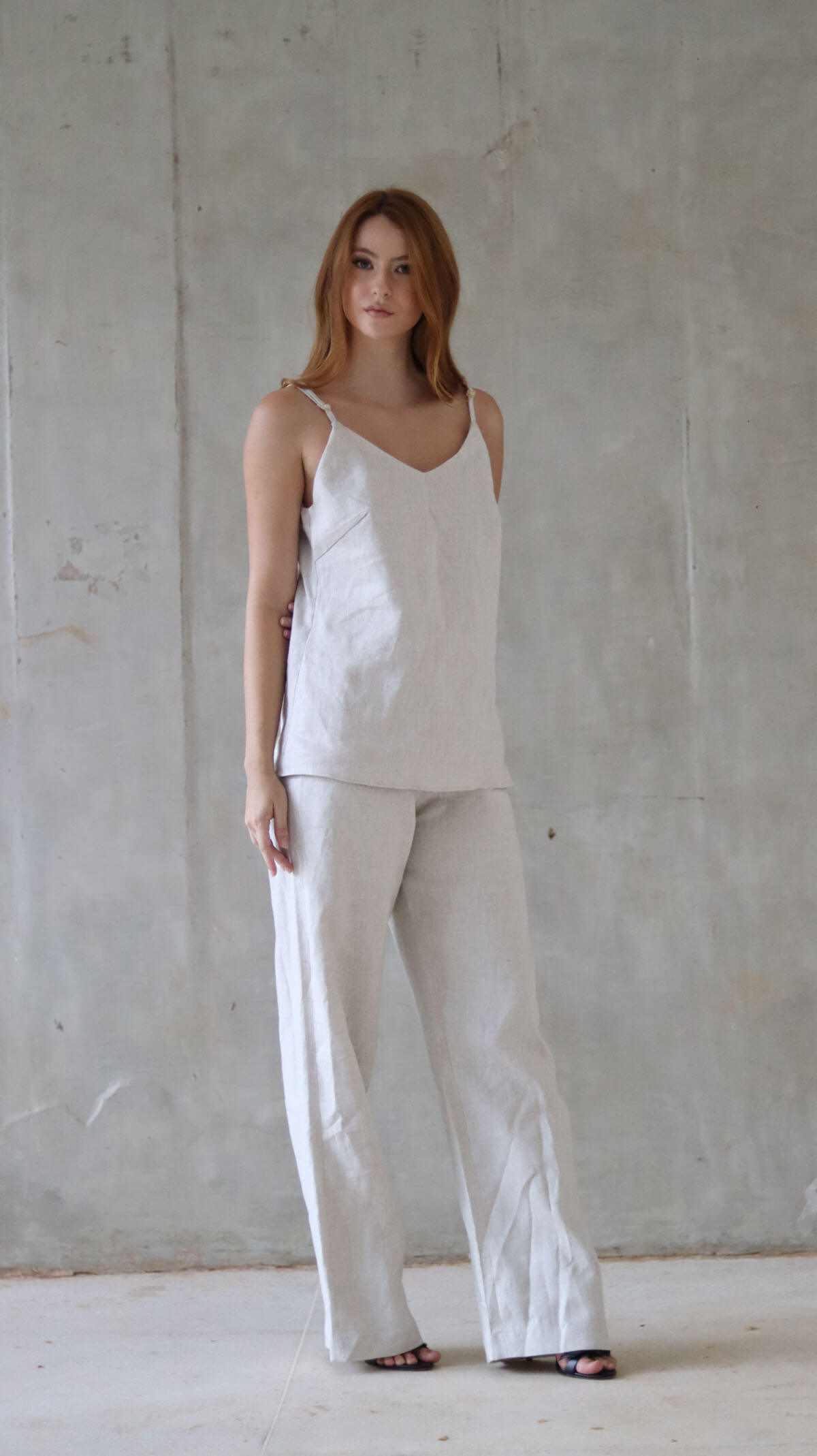 Regata Semear – regata feita em 100% linho, forrada em crepe. Possui reguladores nas alças em metal banhado dando todo o conforto ao ajustar sua peça.