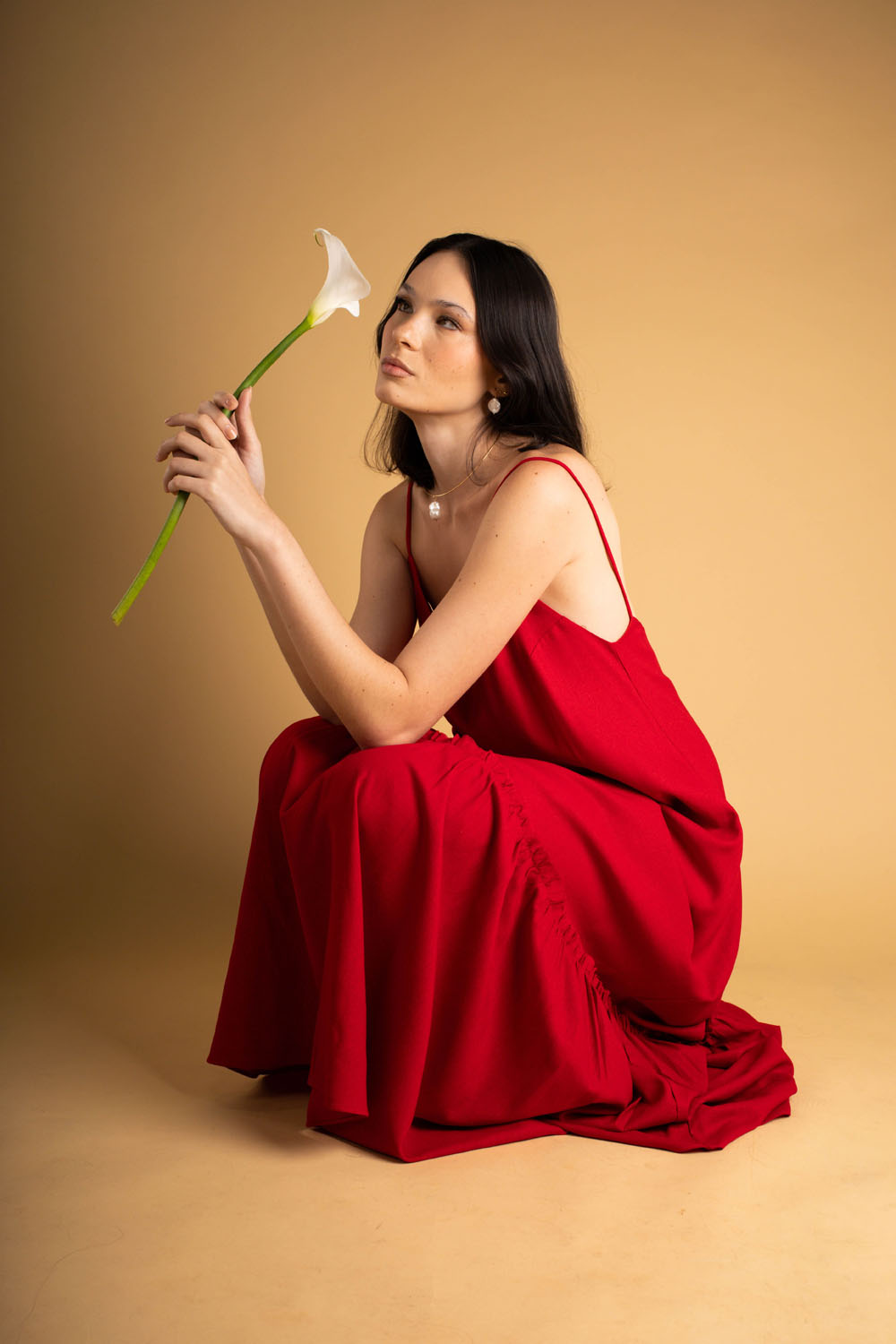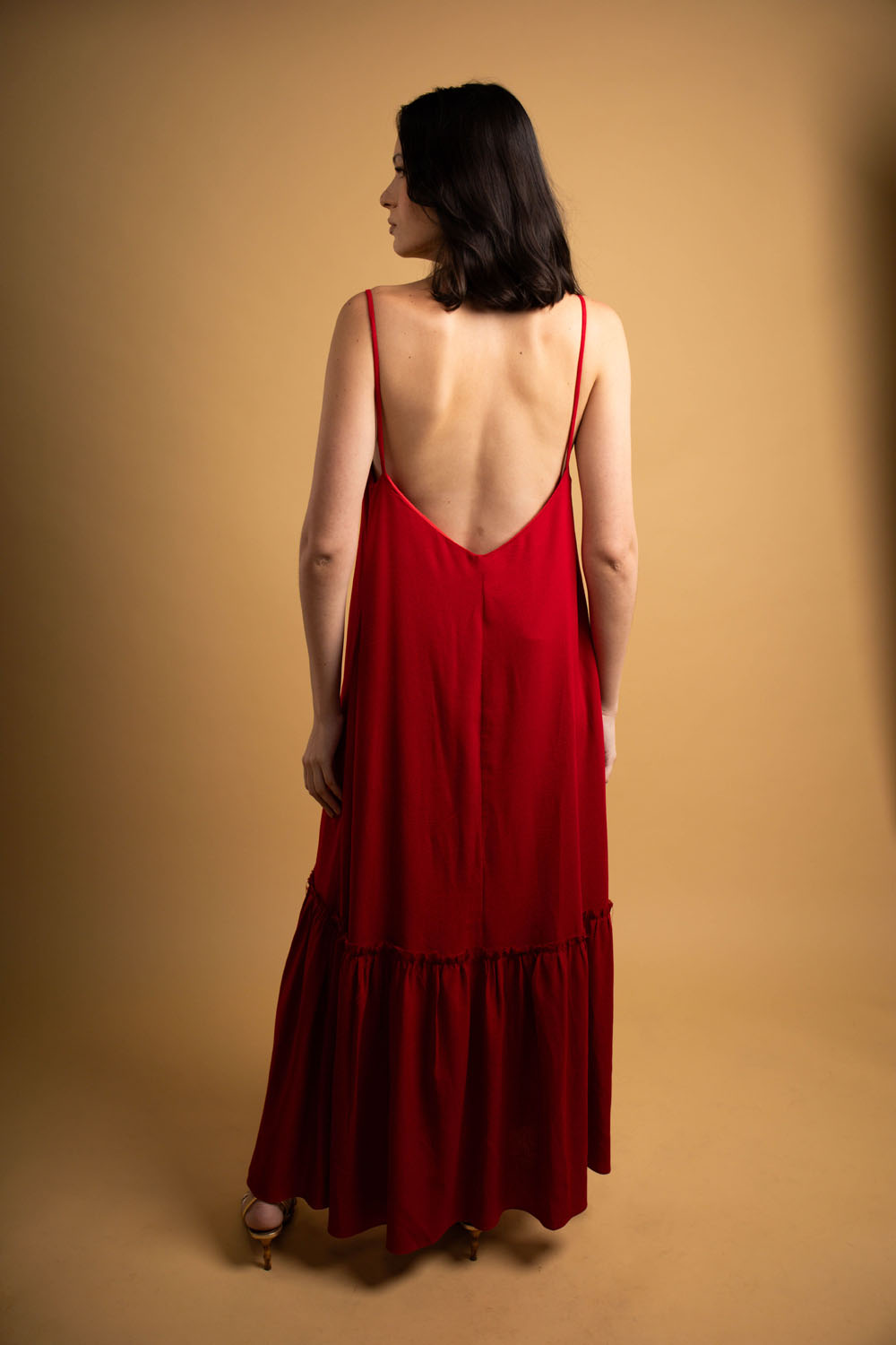 Vestido Marina – vestido feito em linho orgânico. Possui decote um lindo decote nas costas e um babado trazendo romantismo para a peça.